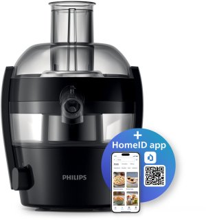 - Snel en eenvoudig schoonmaken: QuickClean-technologie en gladde oppervlakken zorgen ervoor dat de sapcentrifuge binnen 1 minuut schoon is. Vezels en pulp vegen eenvoudig weg van de zeef.