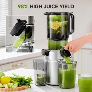 De RFWR® Automatische sapcentrifuge belooft het beste van twee werelden: de voedzaam behoudende werking van een slowjuicer gecombineerd met praktisch gebruiksgemak voor dagelijks gebruik. Met een 250 W motor en een ruime 145 mm opening kun je grotere stukken fruit en groenten in één keer invoeren, waardoor voorbereidingstijd flink vermindert. De royale 2 liter opvangcapaciteit betekent dat je langere perssessies kunt doen zonder constant te hoeven legen — ideaal voor gezinnen of voor wie sap in grotere hoeveelheden bereidt. De koude perstechnologie maximaliseert sapopbrengst en behoudt enzymen en vitamines, terwijl het drievoudige filtersysteem de sapzuiverheid verbetert en een prettige mondgevoel geeft. Veiligheid is ingebouwd met een automatische stop bij openen en het anti-druppeldeksel voorkomt knoeien. Bovendien is de motor relatief stil, zodat je ‘s ochtends kunt juicen zonder het hele huis wakker te maken. Naast fruit- en groentesappen kun je ook notenmelk bereiden, waardoor dit apparaat multifunctioneel inzetbaar is voor wie gezonde dranken wil integreren in het dagelijks leven.